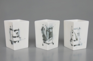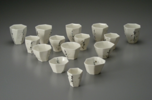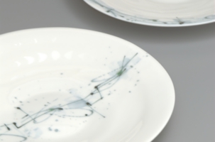 選び抜かれて生み出された形は彫刻的であり、白磁に描かれた心地よい線描は抽象絵画を想起させる。