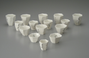 磁器土を素材として皿やカップなどの器からオブジェなどを繊細な表現で生み出す。