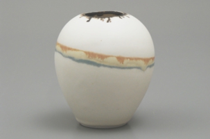 洗練された無駄のない造形と白い地を活かした軽妙な絵付けが特に目を引く。